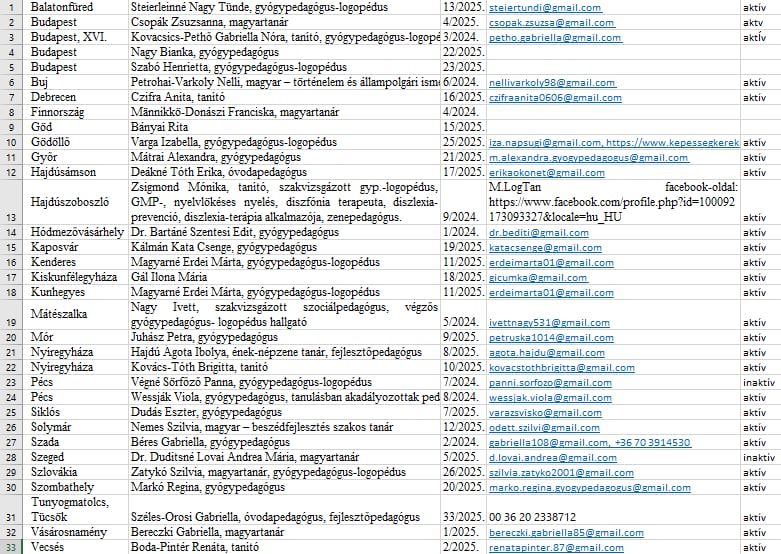 Az alábbi listából kiválaszthatjátok a lakóhelyetekhez legközelebb eső szakembert, aki jogszerűen használhatja munkájában az Integratív Diszlexia-terápiát: